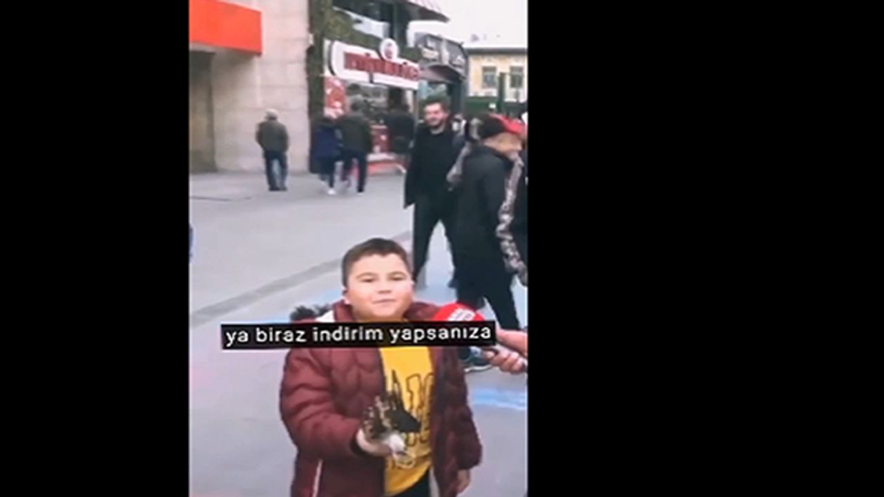 “İki gündür scooter alamıyorum. Biraz indirim yapsanız da bir şeyler alabilsek ya” şeklinde açıklama yapan 7 yaşındaki küçük çocuk röportajın devamında şu cümleleri kullandı: