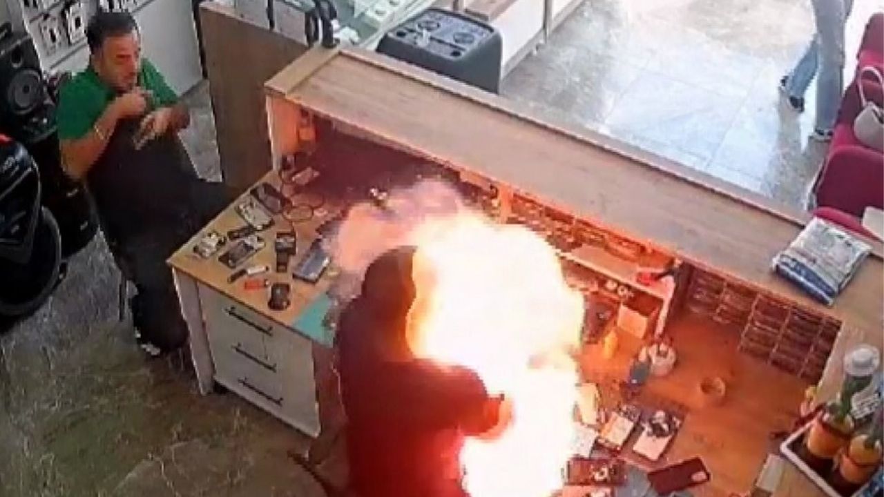 Olay, Aksaray’ın Ortaköy ilçesinde bir telefon tamircisinde yaşandı. Edinilen bilgiye göre, telefon tamircisi Ferhat Özkan (31) müşterisinden gelen telefonun bataryasını değiştirmek istedi. Telefonun kapağını söken Özkan, tam bataryayı çıkartmaya çalışırken batarya bomba gibi patladı. Alev topuna dönen batarya Özkan’ın çeşitli yerlerinde de yanıklara neden olurken, patlama anı iş yerinin güvenlik kamerasına yansıdı.