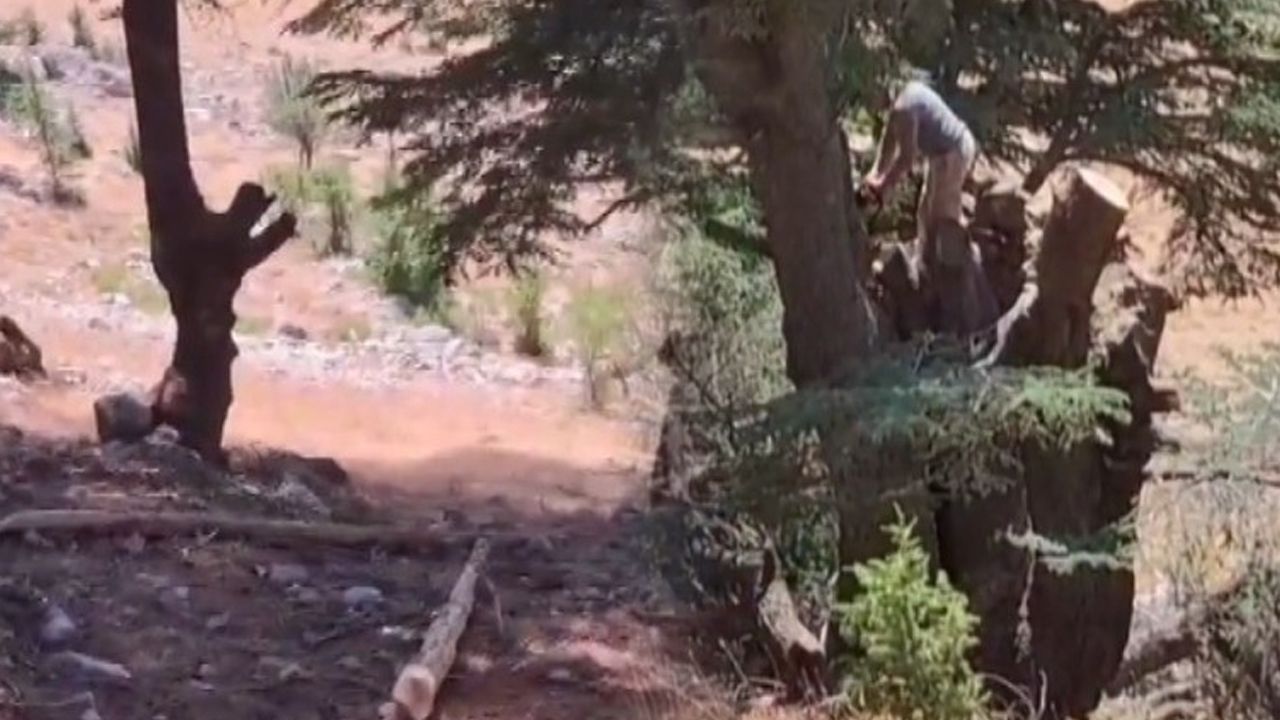 Olay anı ise bir vatandaş tarafından cep telefonu kamerasıyla kaydedildi. Görüntülerde şahısların ormanlık alanda motorlu testere ile ağaç kesmeye çalıştıkları anlar yer aldı.