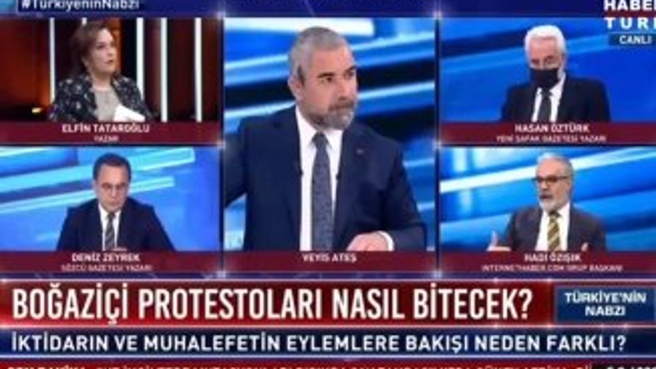 Habertürk'te Veyis Ateş'in sunduğu Türkiye'nin Nabzı programında Elfin Tataroğlu ve Hasan Öztürk arasında gergin bir tartışma yaşandı. Tataroğlu, Öztürk'e "Bana ne söyleyeceğimi dikte edemezsiniz" diyerek çıkıştı.