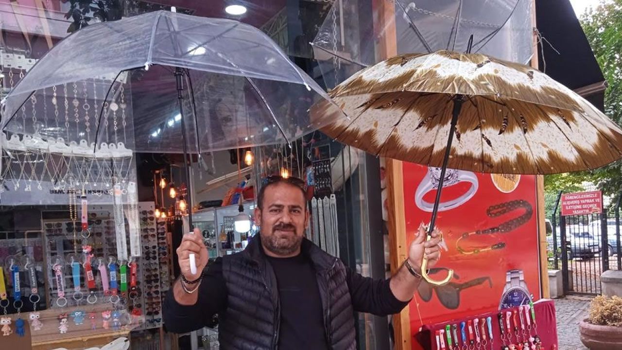 Eskişehir’de uzun yıllardır esnaflık yapan Tamer Yetişkul, yağışların artmasıyla şemsiye stokları yapmaya başladıklarını dile getirdi. Şemsiye fiyatları hakkında da bilgi veren Yetişkul, “Kış bu sene erken geldi, yağmurlar başladı. Geçtiğimiz yıllara göre şemsiye satışları bu yıl artışta. Son günlerde çok şemsiye sattık. Şemsiye çeşitlerimiz de çok. Yağmur yağınca şemsiyeye talep yoğun oluyor. Bu sene bol yağmur bekliyoruz inşallah. Şemsiye stoklarımızı hazırlıyoruz. 12 koli çeşitli modelde şemsiyemizi aldık. Kadın, erkek ve çocuk için ayrı şemsiye satıyoruz. Bardak, şeffaf, baston, yarı otomatik, tam otomatik şeklinde şemsiyelerimiz var. Fiyatlar 95 ile 500 lira arasında değişiyor” ifadelerini kullandı.